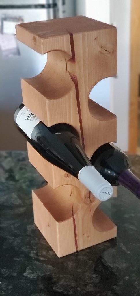 Wine bottle holder with red epoxy